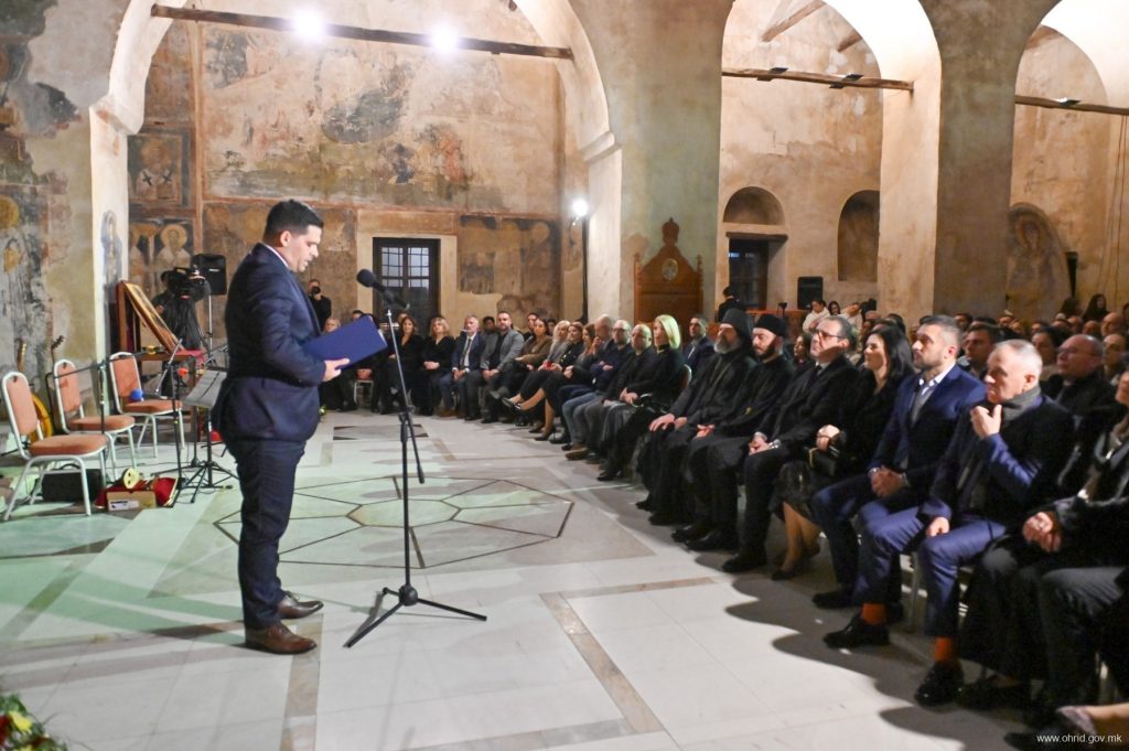 Пред бројните гости од дипломатскиот кор, претставници од верските заедници во државава, пратеници во Собранието на Р. Макдонија, советници, градоначалници на збратимени градови со градот Охрид и бројни граѓани, се обрати градоначалникот Кирил Пецаков
