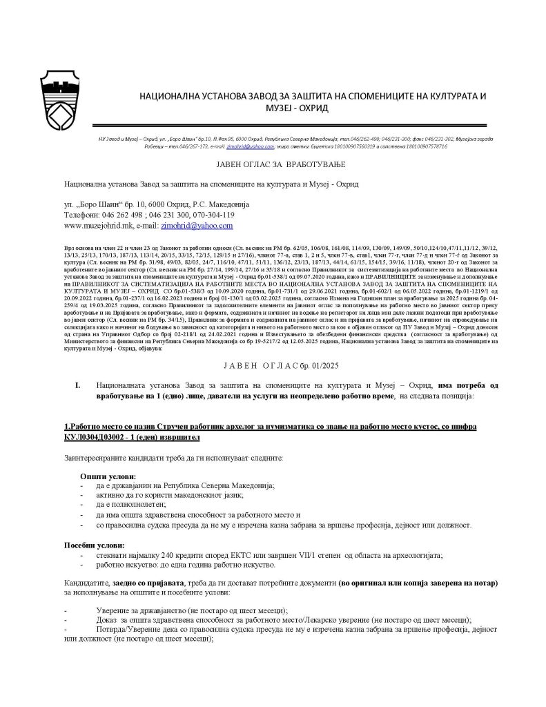 Published inјавен оглас за вработување во НУ Завод и Музеј Охрид (1)_Page_1