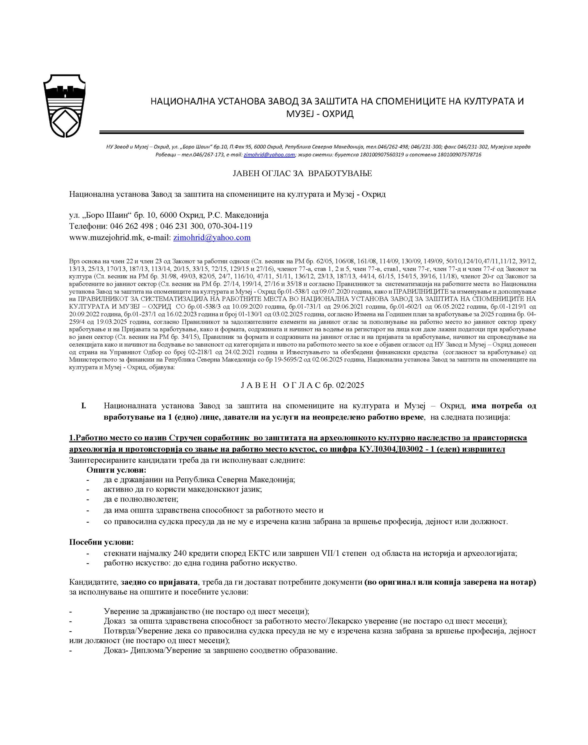 Published inјавен оглас за вработување во НУ Завод и Музеј Охрид_Page 02